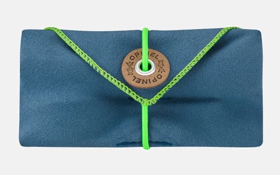 Entwickelt in Zusammenarbeit mit Designer Franck Fontana, enthält das Set ein Messer N°08, eine Gabel und einen Löffel, die am Griff des Messers befestigt werden können, sowie ein Mikrofaser-Serviettenetui zum Verstauen und Reinigen.